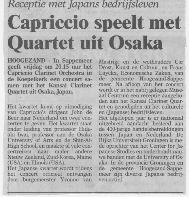 Het Kansai Clarinet Quartet was van 26 – 28 maart 2009 de gast van Capriccio.