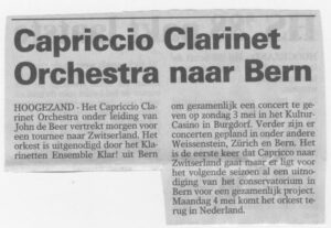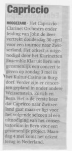 Van 30 april tot en met 4 mei tourde Capriccio door Zwitserland met o.a. concerten in Bern, Zürich en Solothurn.