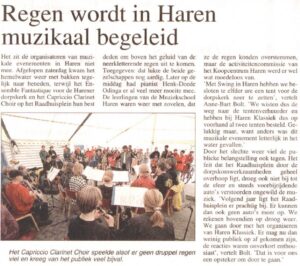The Caenarfon Denbigh HERALD ( july 23, 1999) kwam uit met een foto van ons samen met het North Wales Clarinet Choir in het Caernarfon Castle met de kop: ” Clarinetists double up with the Dutch”.
